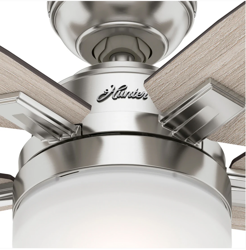 - ASPAS REVERSIBLES: Ventilador de 5 aspas reversibles en acabado Light Gray Oak y Greyed Walnut de material compuesto