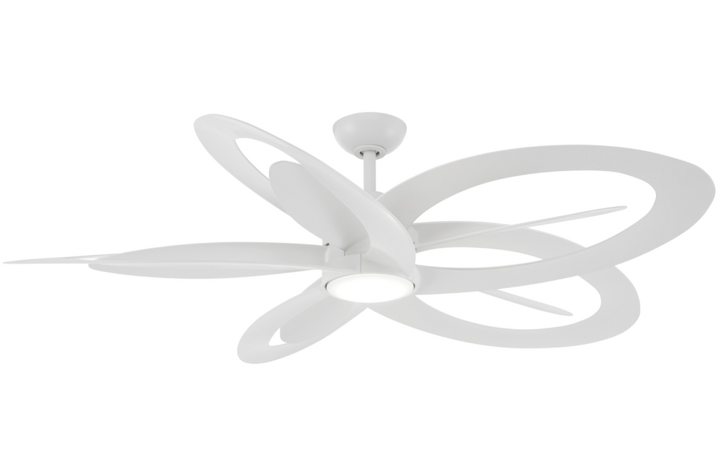 Ventilador de techo LED de 60" con 10 aspas (cinco aspas de 60" y cinco aspas contrarrotatorias de 41"), acabado blanco mate, aspas blancas mate y lente grabado