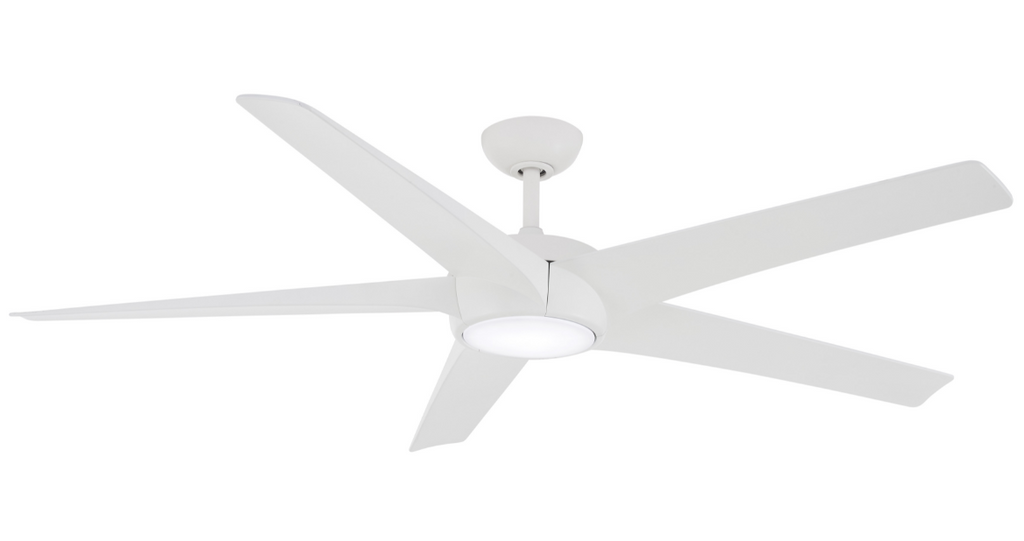 Ventilador de techo LED de 65" con 5 aspas, acabado blanco mate, aspas blancas mate y lente grabado